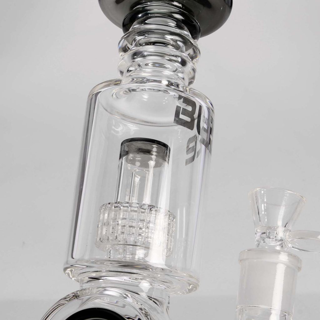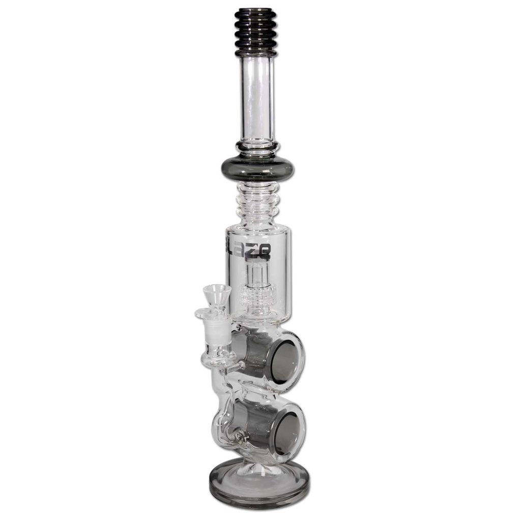 Robustní bong od BLAZE® s přezdívkou „trhač plic“. Drum perkolátor, vícenásobné komory, úzký náustek pro kontrolovaný tah a stabilní základna. Tloušťka skla 5 mm.
