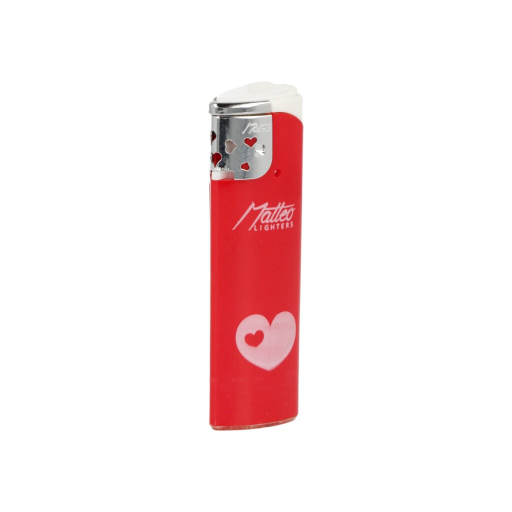 Plynový žhavící zapalovač Matteo Turbo Hearts s valentýnskou tématikou. Plnitelný turbo zapalovač s možností nastavení výšky plamene.