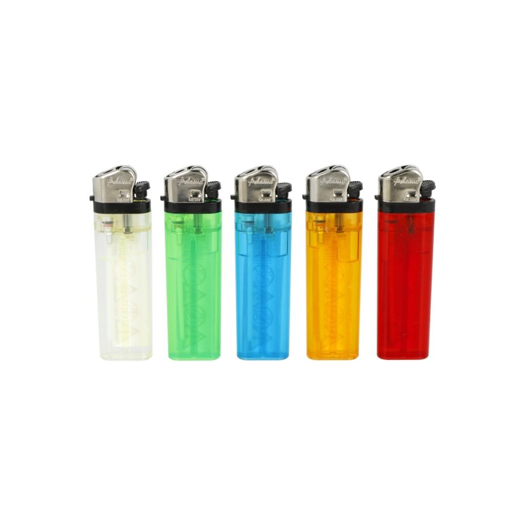 Plynový transparentní zapalovač Adamo jednorázový. Kamínkový zapalovač s nastavením intenzity plamene je neplnitelný. Výška zapalovače 8,2 cm.