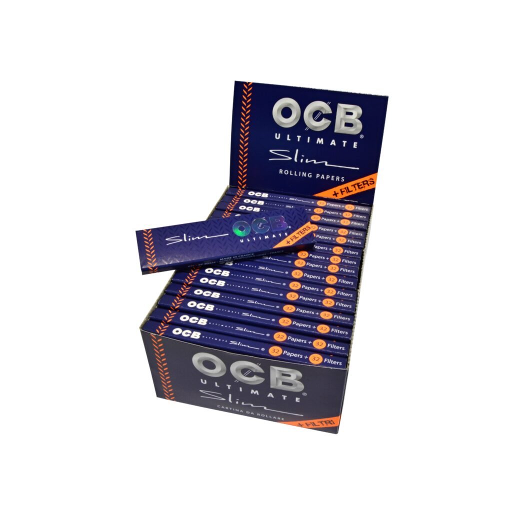 Cigaretové papírky OCB Ultimate Slim King Size. Nejlehčí papírky s váhou pouze 10g/m2 pro ještě větší požitek.Knížečka obsahuje 32 papírků + 32 papírových filtrů. Rozměry papírku: 44x109mm