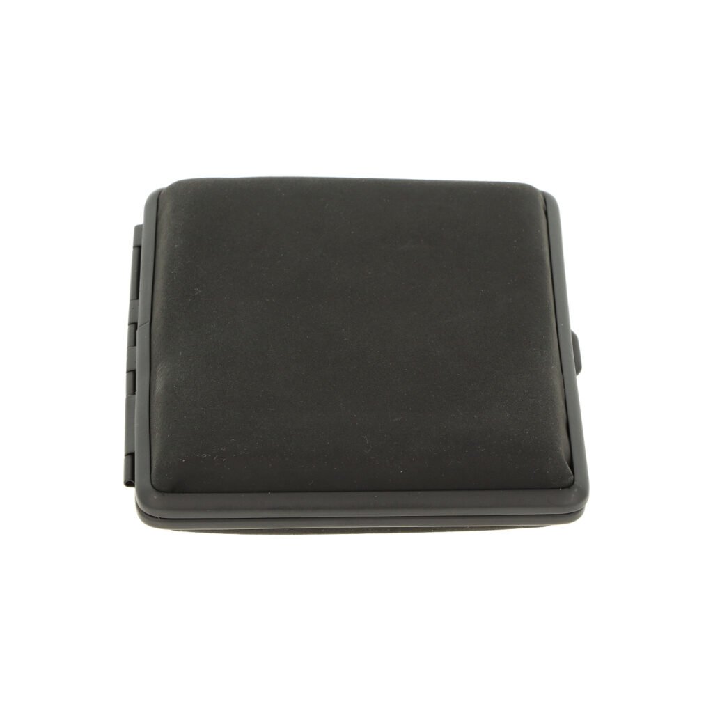 Kožená tabatěrka na 20 ks cigaret klasické velikosti (King Size). Kovové cigaretové pouzdro Angelo v černém odstínu má povrch potažený kvalitní hladkou kůží v matném provedení. Zadní a přední strana pouzdra jsou stejné. Cigarety jsou uvnitř tabatěrky zajištěny gumičkou. Cigaretové pouzdro je dodávané v papírové krabičce.