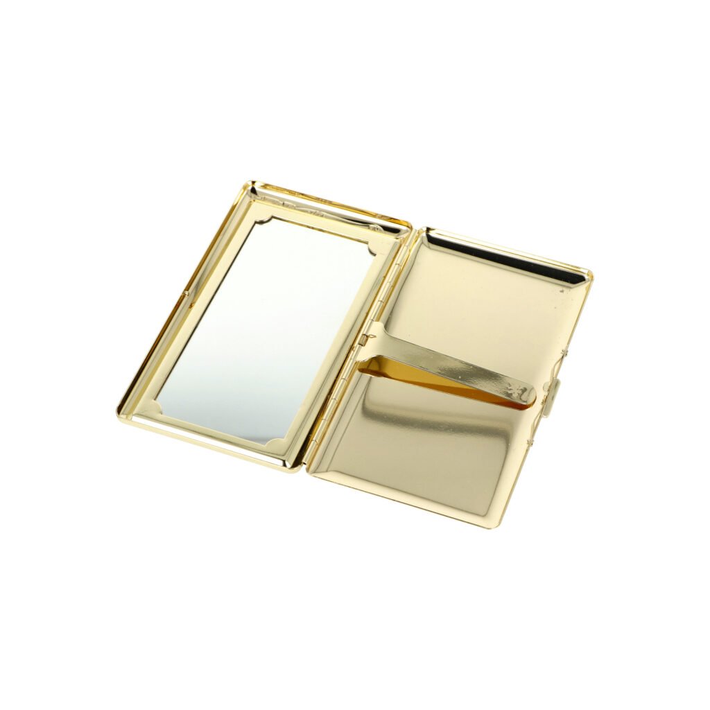 Elegantní dámská tabatěrka se zrcátkem na slim cigarety. V leštěném mosazném provedení pojme 10 ks slim cigaret o průměru 6 mm.