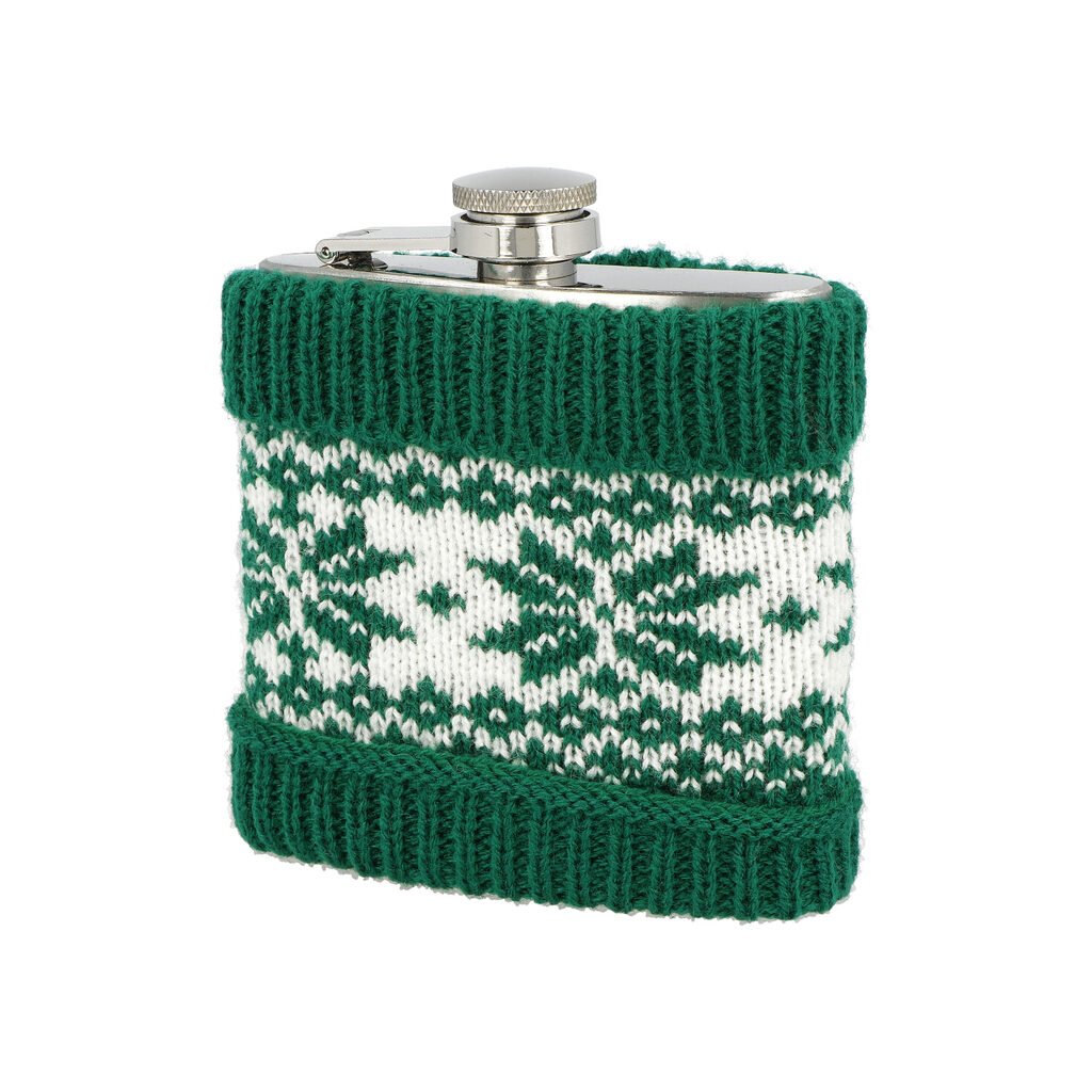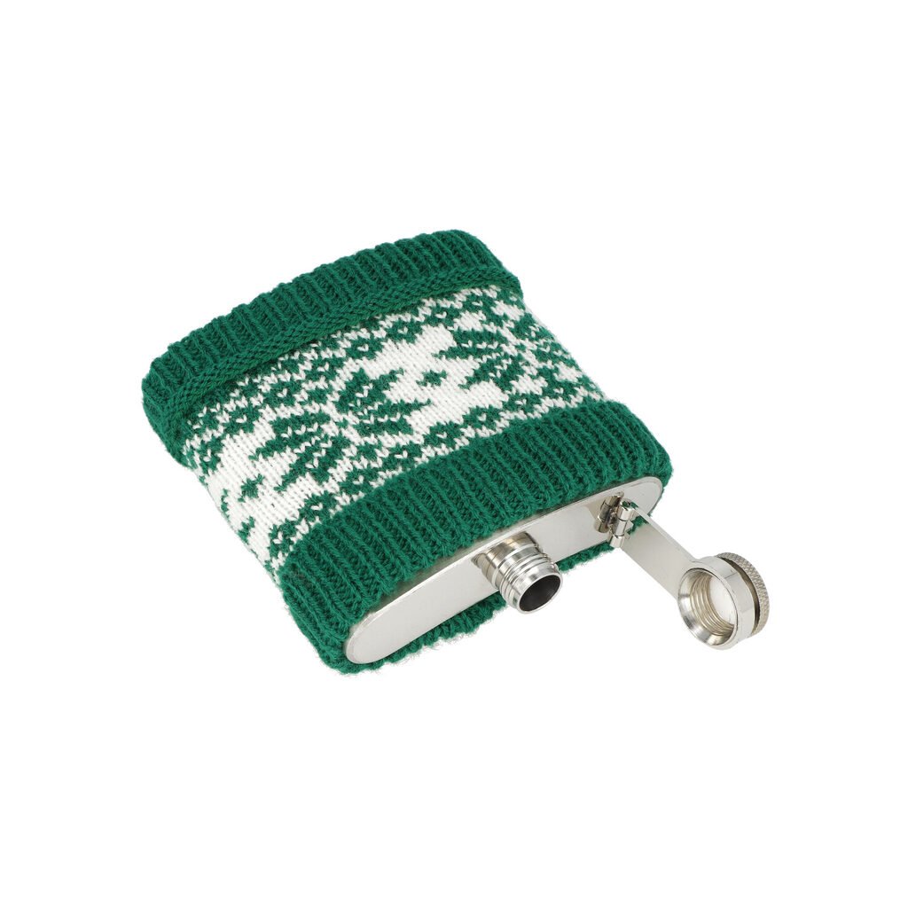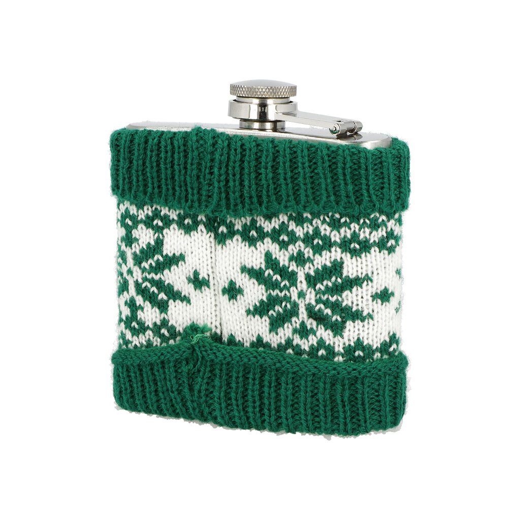 Dárková sada nerezová vánoční placatka na alkohol s pohárky. Likérka je vyrobená z nerezové oceli s jemně broušeným povrchem. Tělo placatky je potažené vlněným převlekem s vánočním motivem v černo bílém provedení. Likérka klasického prohnutého tvaru je vybavená šroubovacím uzávěrem a držákem víčka, který zabrání jeho ztrátě. Vánoční sada s likérkou je dodávaná v dárkovém boxu.