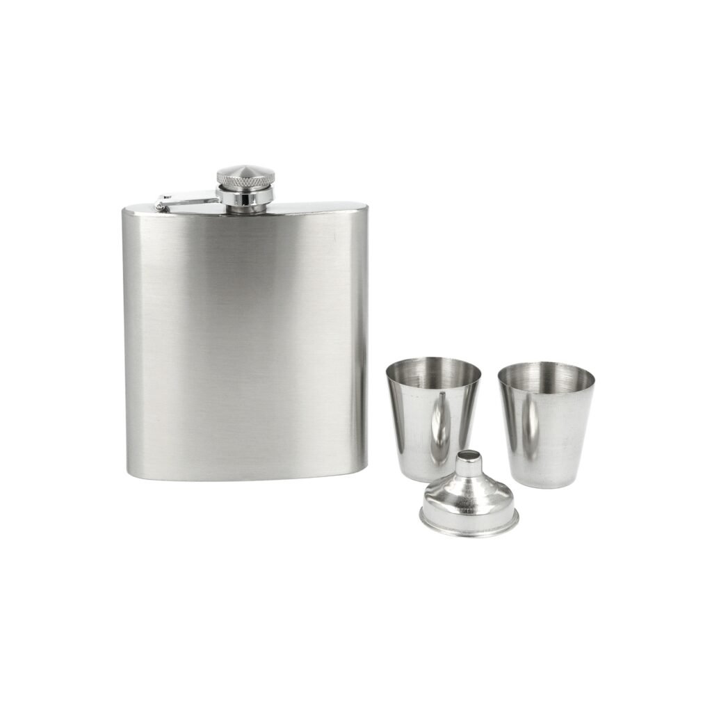 Dárková sada - Placatka s pohárky - Nerezová, čistá, 207 ml