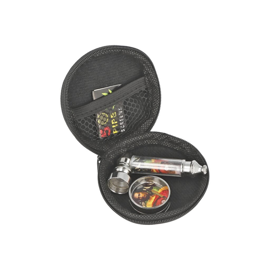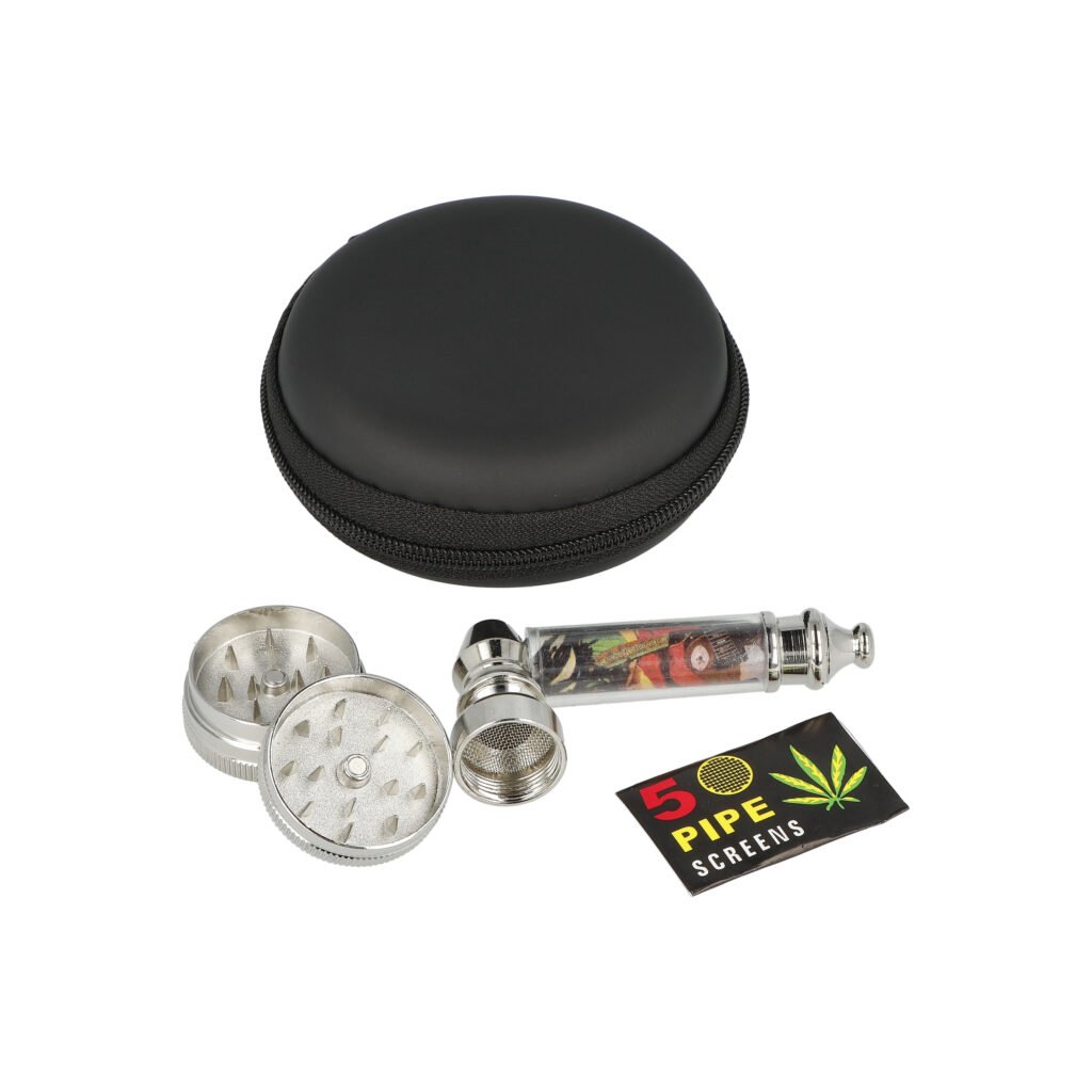 Dárková sada - kovová drtička bylin a tabáku, šlukovka a sítka v pouzdře. Vše máte při sobě v praktickém pouzdře na zip - dvoudílný kovový drtič s ostrými hroty, kovovou šlukovku a ocelová sítka (5ks). Ideální jako dárek pro Vaše přátelé.
