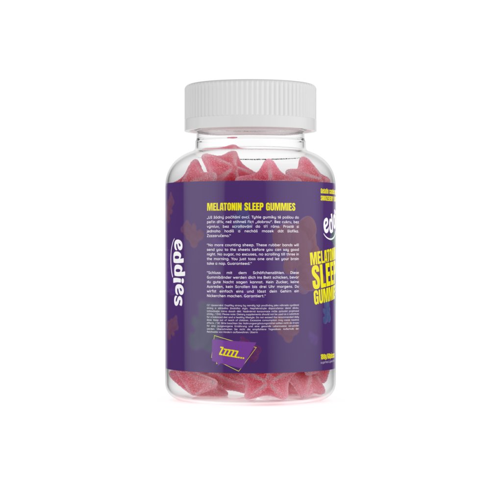 Eddies Sleep Gummies přinášejí 0,5 mg melatoninu v denní dávce- 1/2 gumídka, který ti pomůže usnout rychleji a probudit se svěží – bez těžké hlavy, bez návykovosti a bez polykání tablet.