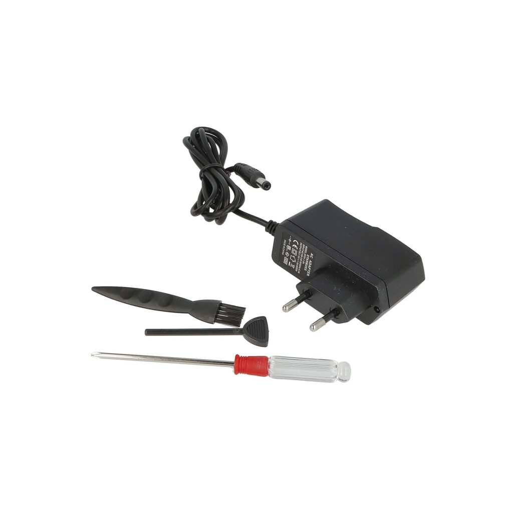 Balení obsahuje: elektrickou plničku Champ, odnímatelný zásobník tabáku, napájecí síťový adaptér, čisticí sadu a malý křížový šroubovák.
