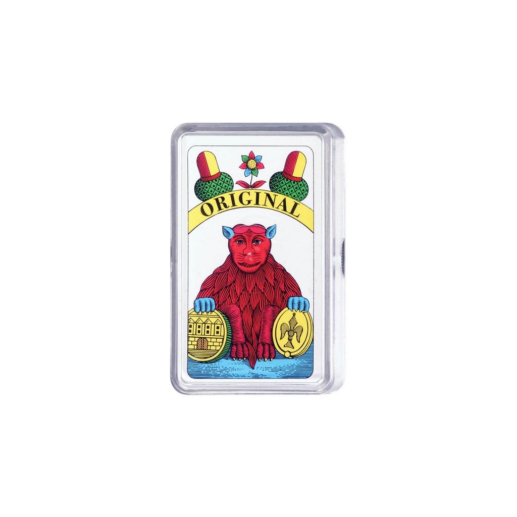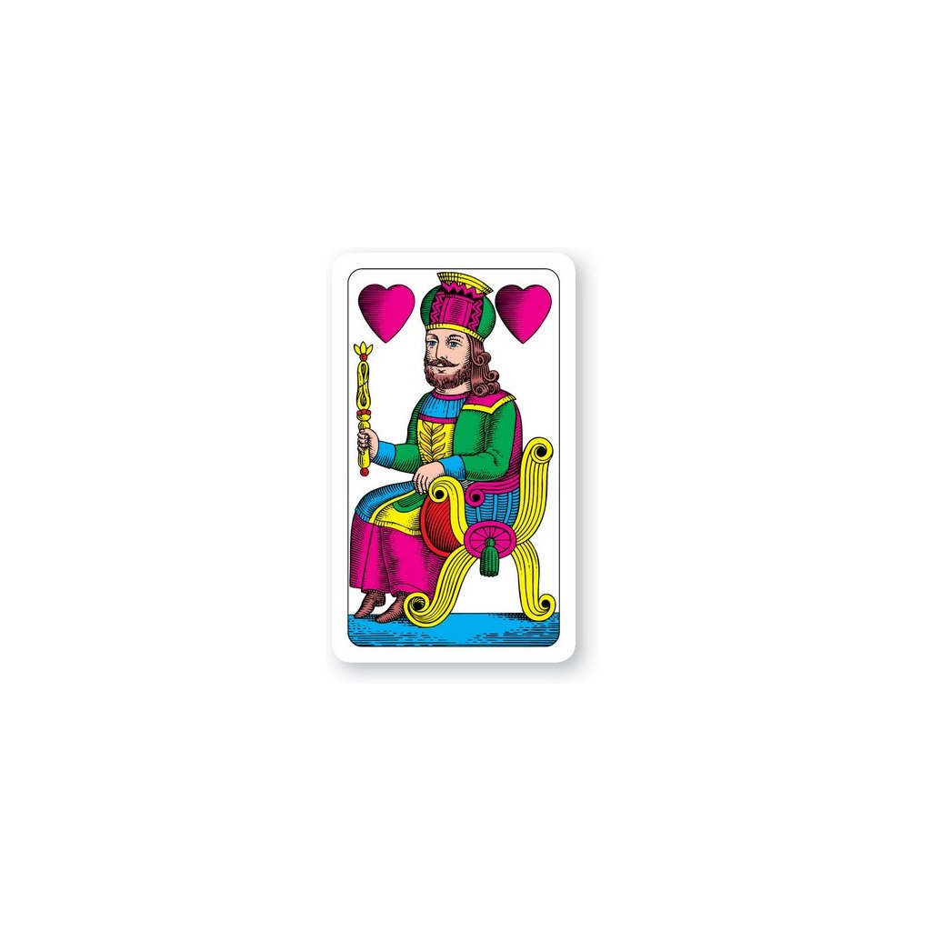 Mariášové jednohlavé karty v plastové krabičce. Zadní strana karet je s koníkovým vzorem. Balení obsahuje 32 karet.