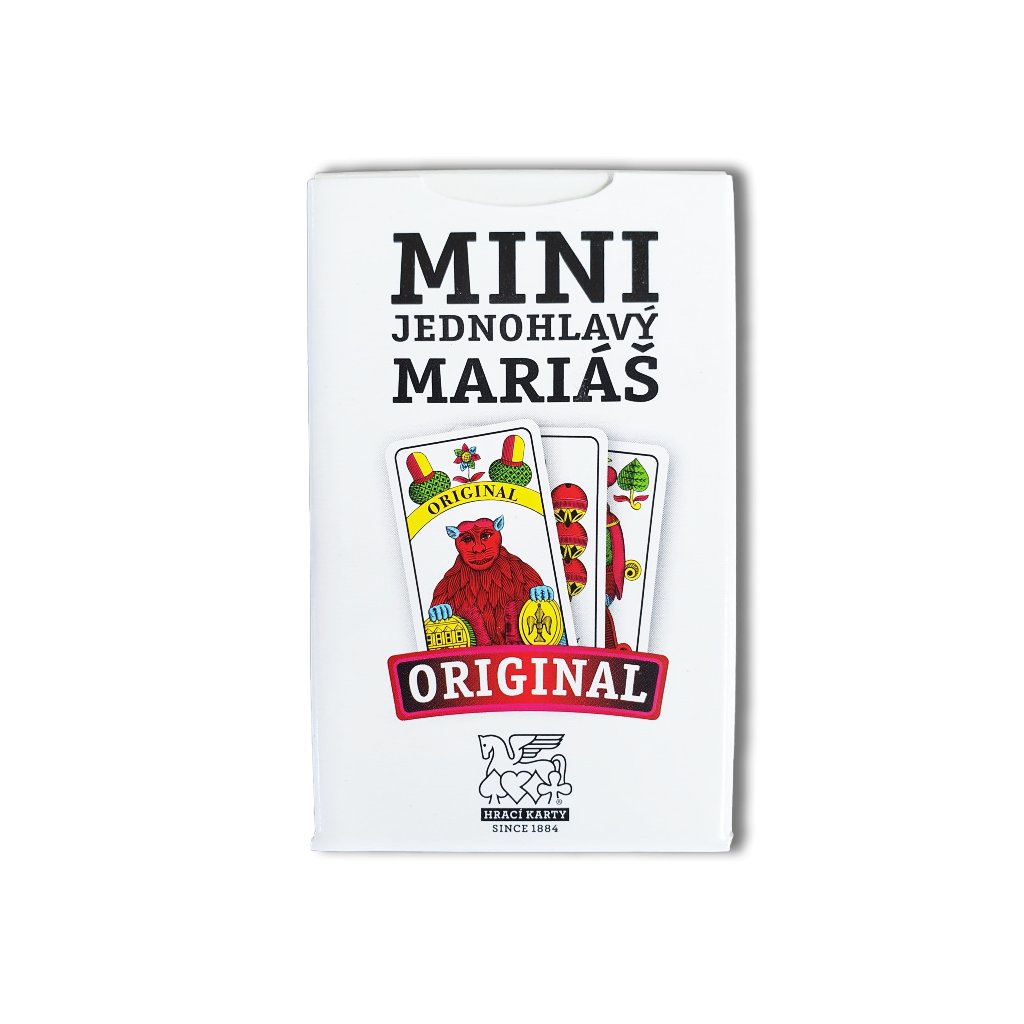 Mariášové jednohlasé karty ve verzi MINI v papírové krabičce. Zadní strana karet je s koníkovým vzorem. Balení obsahuje 32 karet.
