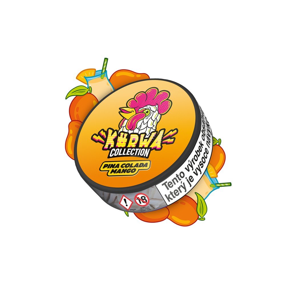Nikotinové sáčky Kurwa Collection Pinacolada - Mango. Jako sladký mangový džus, osvěžující a živý. Přidaná kokosová chuť dodává nový rozměr. To je koktejl pro vaše chuťové buňky.