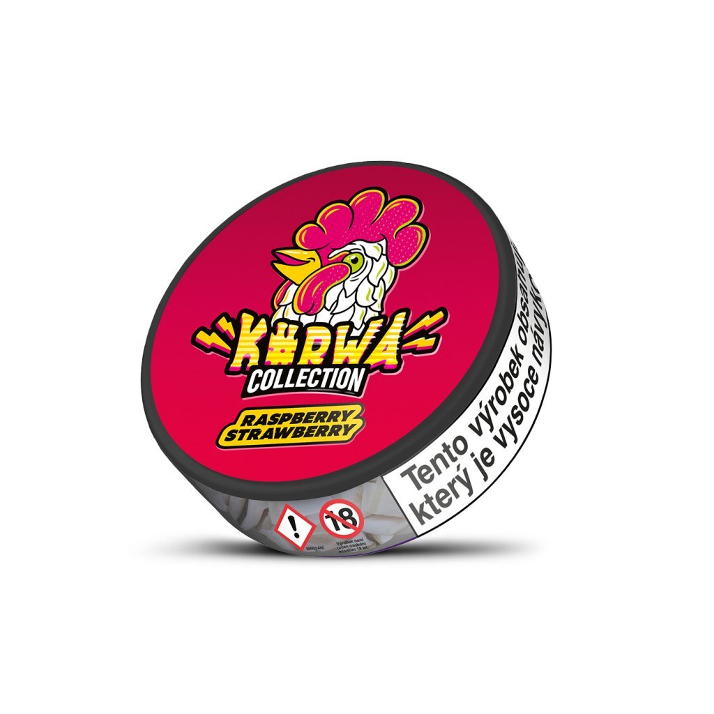 Nikotinové sáčky Kurwa Collection - Raspberry Strawberry. Tento výrobek nabízí dokonalou chuť maliny a sladké jahody, která vás zcela pohltí. Ideální volba pro ty, kdo hledají něco nového a vzrušujícího.