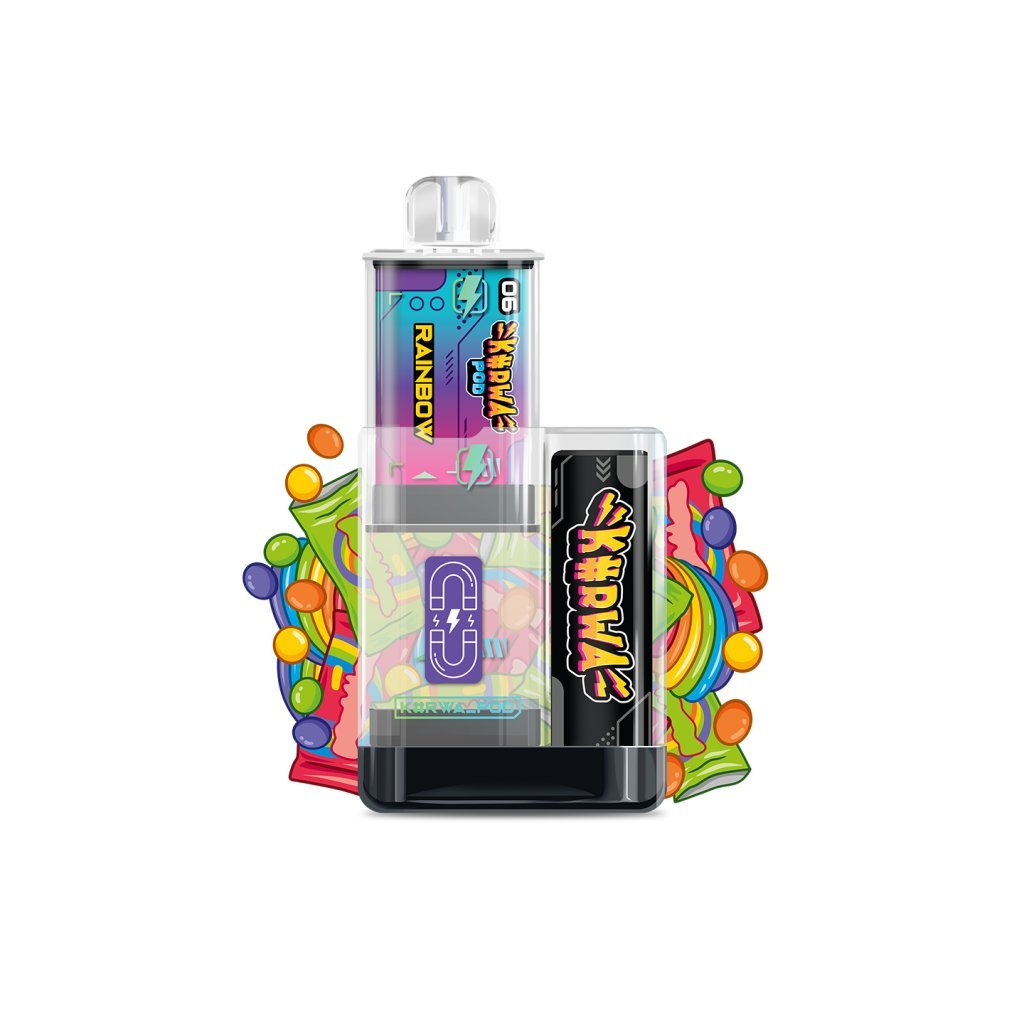 Rainbow příchuť spojuje svěží trpkost limetky, sladkokyselou čerstvost pomeranče, bohatou chuť černého rybízu, šťavnatou sladkost jahod a citrusovou svěžest citronu. Je to Kurwa mix chutí, který při každém potáhnutí rozmazluje tvoje chuťové pohárky. Připomínající chutě bonbónů skittles.