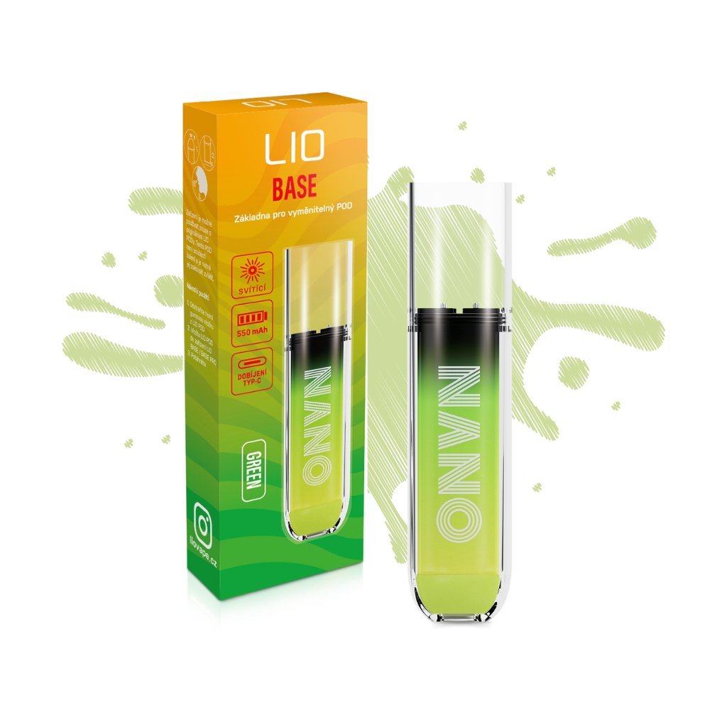Zařízení LIO BASE je nabíjecí základna, určená k použití vyměnitelných, předem naplněných LIO PODů. Je podobná jednorázové cigaretě, ale disponuje nabíjecím konektorem USB-C a baterií s kapacitou 550 mAh. V horní části je slot pro vložení PODu, který se uchytí pomocí magnetů.