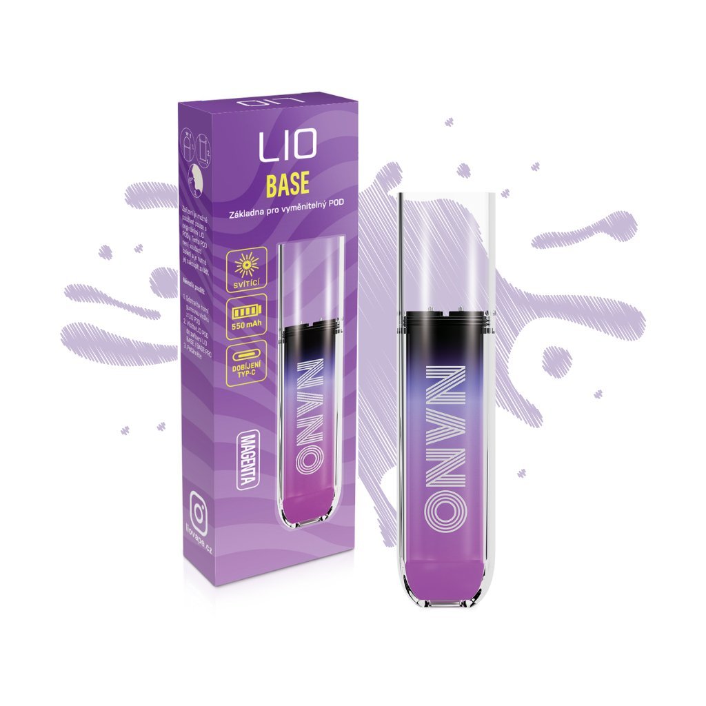 Zařízení LIO BASE je nabíjecí základna, určená k použití vyměnitelných, předem naplněných LIO PODů. Je podobná jednorázové cigaretě, ale disponuje nabíjecím konektorem USB-C a baterií s kapacitou 550 mAh. V horní části je slot pro vložení PODu, který se uchytí pomocí magnetů.