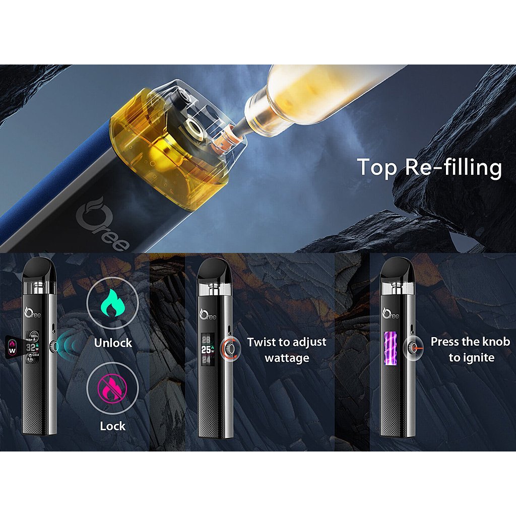 Oree Eclipse Pro Pod Kit - je moderní a stylové zařízení určené pro milovníky vapingu, které nabízí kombinaci pokročilých funkcí, jednoduchého ovládání a elegantního designu.