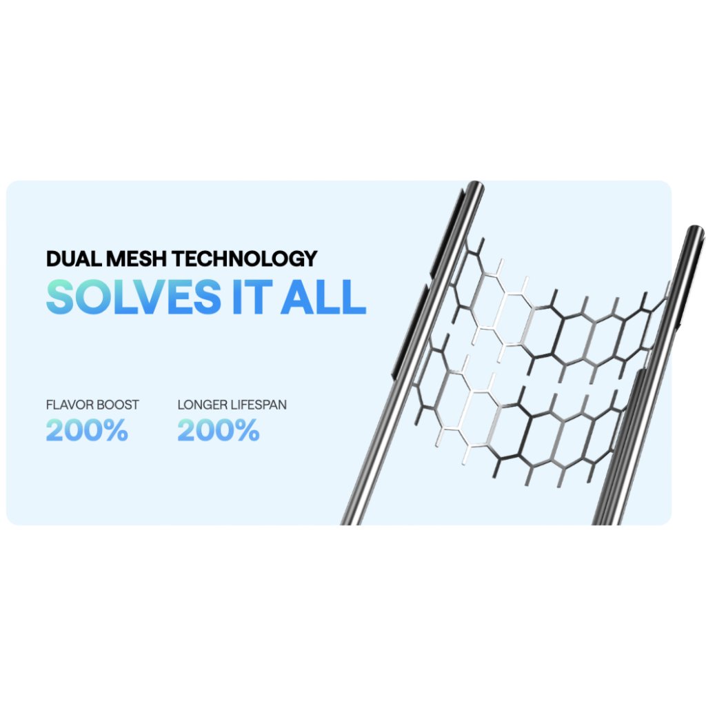 Uvnitř se skrývá technologie Dual Mesh, která přináší až o 200 % intenzivnější chuť a delší životnost spirálek oproti běžným mesh systémům.