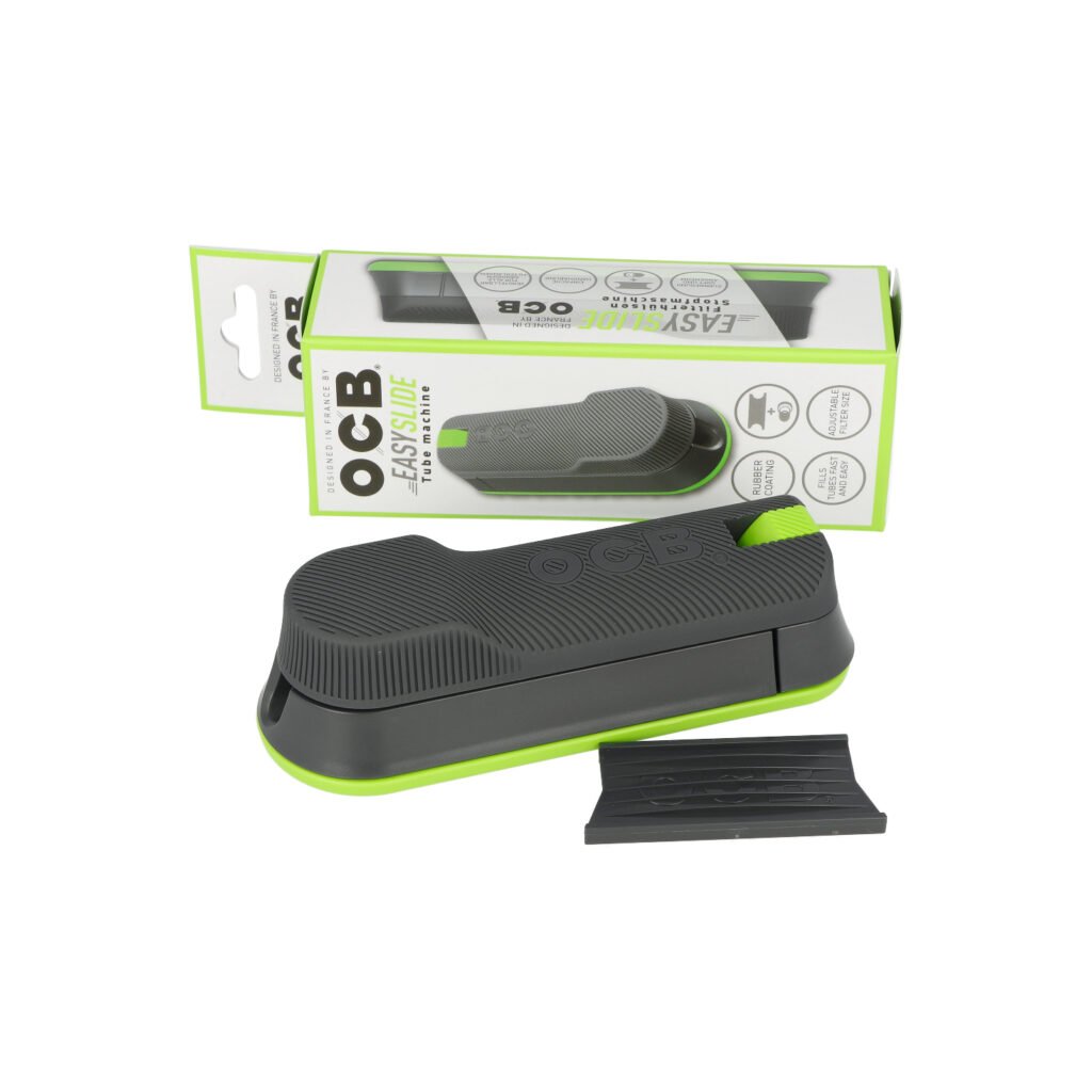 Plastová plnička cigaretových dutinek OCB Easy Slide (plnička cigaret) s volitelnou délkou filtru. Nová generace ruční plničky OCB v novém designu a atraktivní šedo zelené barevné kombinaci. Ruční plnička Easy Slide je určená pro plnění jednotlivých cigaretových dutinek klasické velikosti King Size o průměru 8 mm a to dutinek se standardním filtrem nebo dlouhým filtrem. Cigarety jsou plněné pomocí kovového hrotu. Plnička vyrobená z odolného plastu má spodní základnu a horní část pogumovanou. Díky této nové povrchové úpravě plnička neklouže při plnění. Volba dutinky - délka filtru se provede zeleným voličem posunutím do požadované polohy. Poloha Regular - standardní filtr, Extra - dlouhý filtr. Vyrobení vlastní cigarety je jednoduché - otevřete plničku, zvolíte typ dutinky (délku filtru), prostor pro tabák naplníte Vaší oblíbenou směsí, cigaretovou dutinku nasadíte na hrot a přiklopíte zpět horní část plničky. Jednoduchým tahem dozadu a zpět naplníte dutinku tabákem a cigareta je hotová. V balení plničky najdete plastový nacpávač tabáku, který je prakticky uchycený ve spodní části plničky.