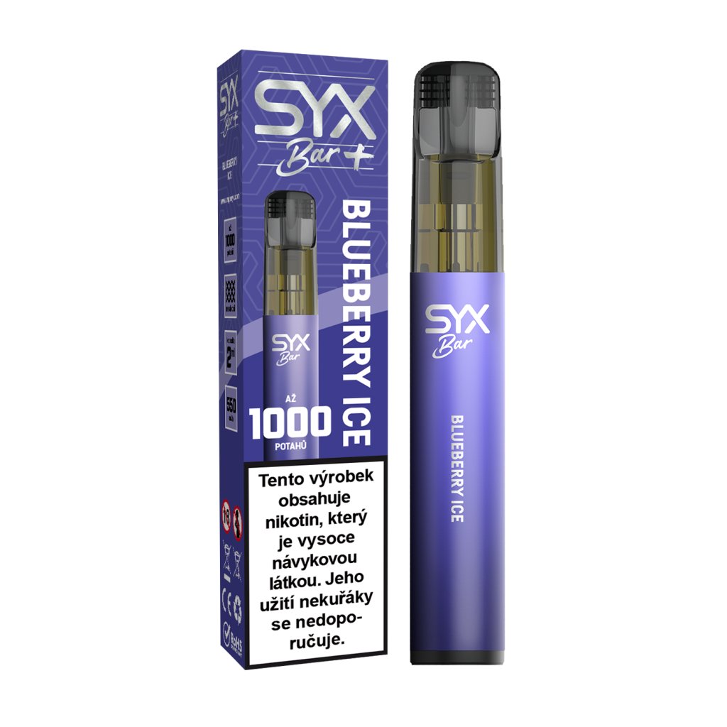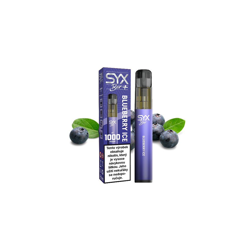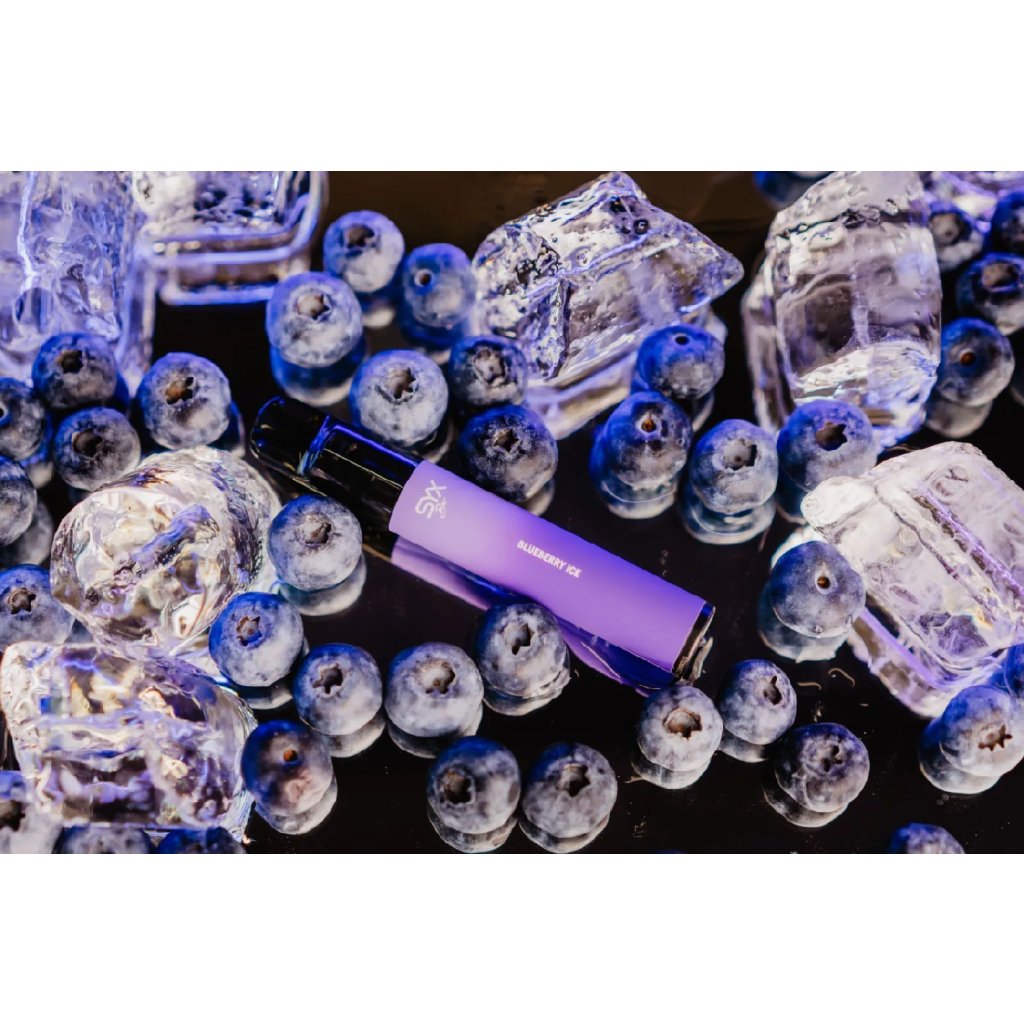 Užijte si dokonalou kombinaci sladkosti borůvky a osvěžující ledové nóty v jednorázové e-cigaretě SYX BAR Blueberry Ice.